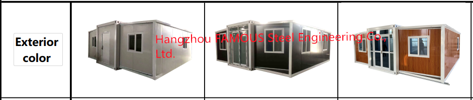 Roof | 3-4mm Hot galvanized steel structure with 4 corner casts and (1)Galvanized steel roof covering; (2)50mm -70mm eps sandwich panel or PU sandwich panel ; (3)50mm -70mm eps sandwich panel or PU sandwich panel ; |